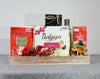 Delight in the flavors of the season with our Holiday Indulgence Gift Crate. This festive collection, presented in a rustic wooden tray, features a delicious assortment of holiday favorites — including Belgian pralines, buttery shortbread cookies, assorted bonbons, and more gourmet treats. Accented with festive greenery, bright berries, and a decorative holiday towel (design and color may vary), it’s the perfect gift to share warmth, sweetness, and holiday cheer with someone special.